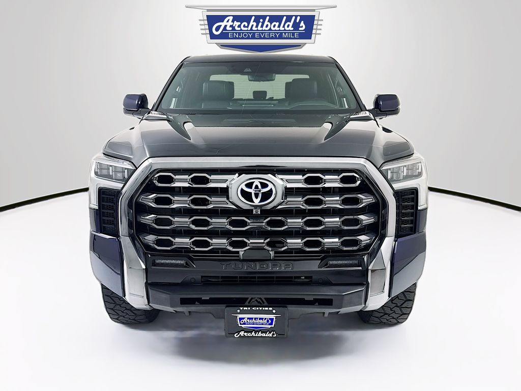 The Platinum trim level ensures a first-class experience inside the cabin, featuring premium leather-appointed seating with both heating and ventilation for the front passengers. You will also enjoy a heated steering wheel for those cold desert mornings and the immersive sound of the 12-speaker JBL premium audio system. With its bold front grille, dark chrome accents, and a suite of advanced safety technology, this Tundra is designed for the driver who wants a truck that performs as well on a night out as it does hauling a trailer through the mountains.